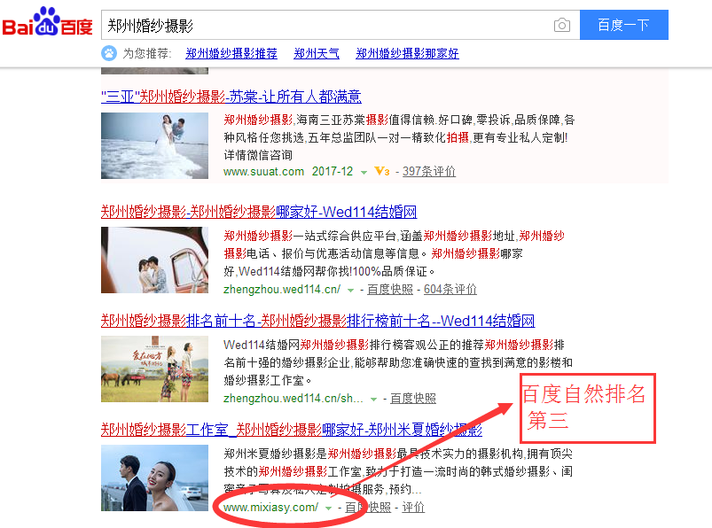 郑州百度优化案例_郑州婚纱摄影 日期:2017-12-01  作者:千搜网络  点击:7278  点赞:
