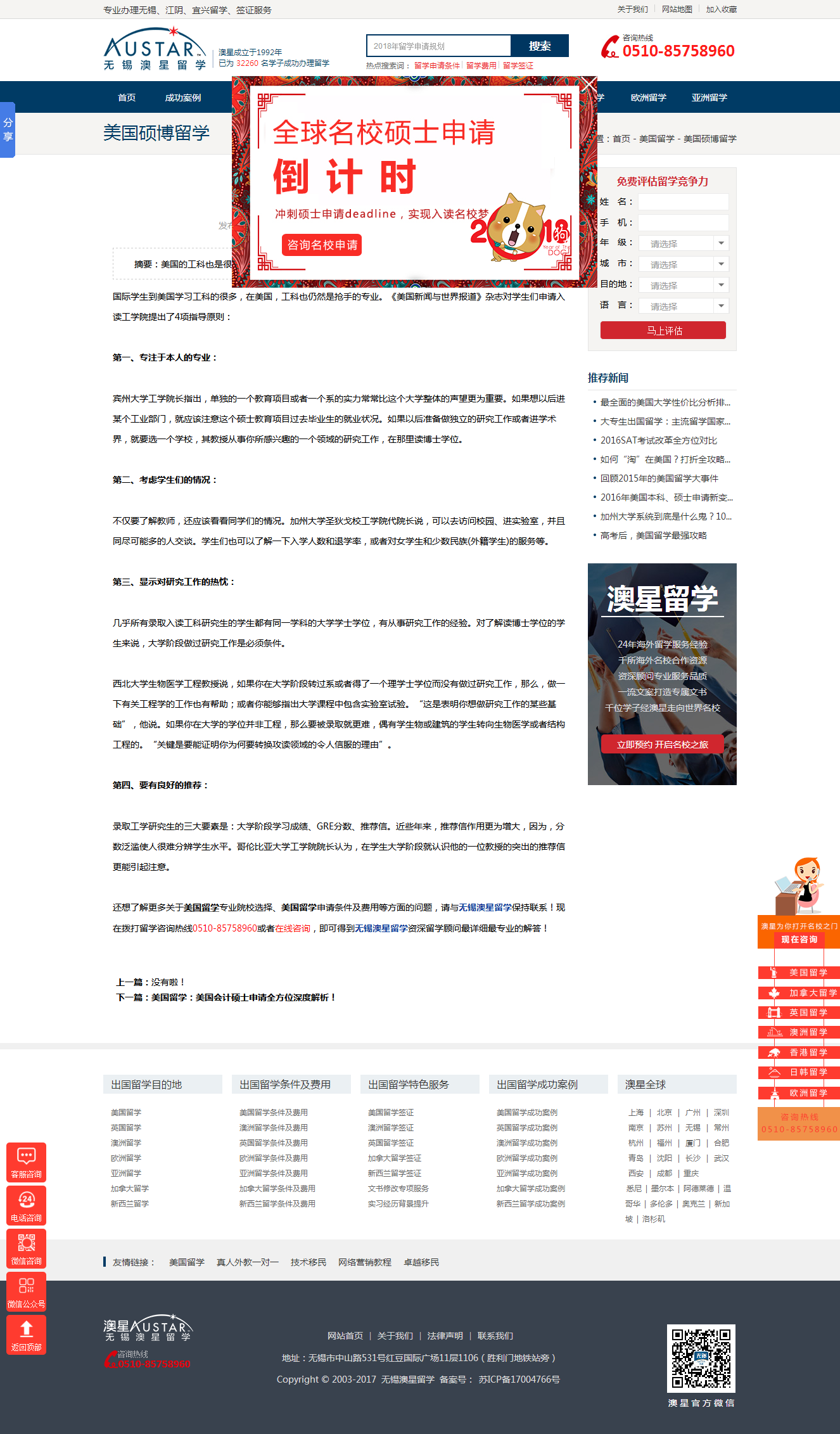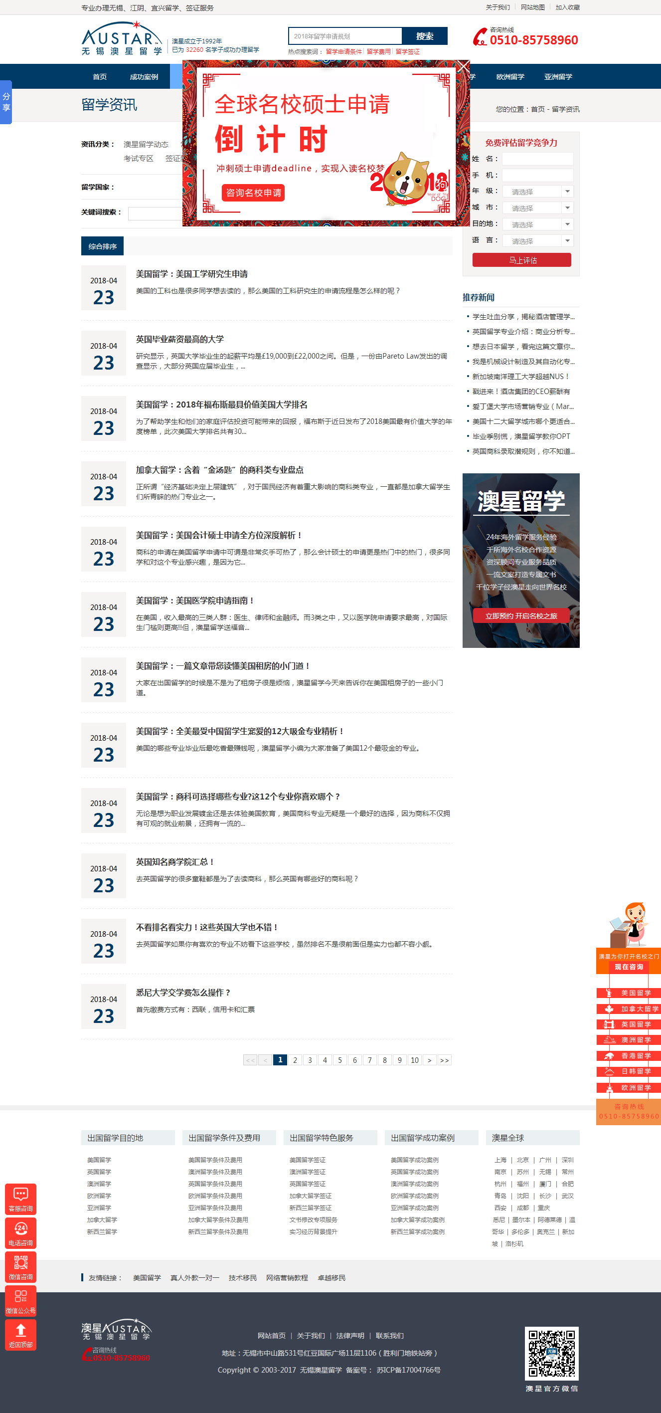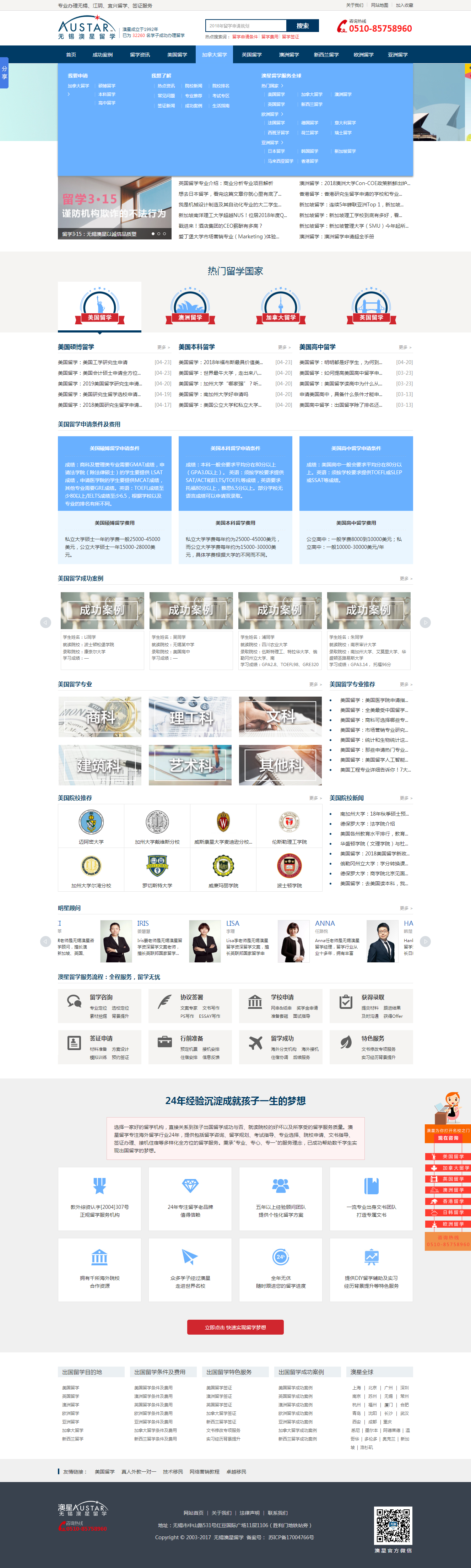 该网站目前无锡地区有关留学的关键词全部在百度首页。